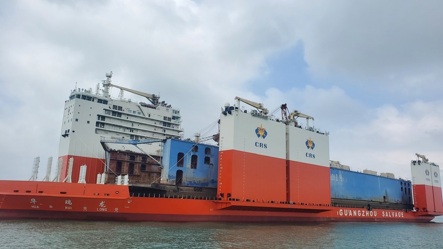 相關負責人介紹,本次出境的兩座海洋工程裝備均達世界領先水平。首航的中國籍“華瑞龍”號為8萬噸級半潛船,系目前全球第三大、中國第二大半潛船,也是亞洲首艘無常規艏樓、四島式設計的半潛船,具備10萬噸級打撈能力,為海上大型設備運輸和應急搶險的重器。馬紹爾群島籍“紫晶”號半潛船載運的“國碩”號油氣鉆井平臺,是當前世界主流的自升式鉆井平臺之一,搭載設備具備國際領先水平,主要用于海上石油和天然氣勘探、開采工程作業,作業水深122米左右,可鉆探水深10668米,適應作業海域廣闊。