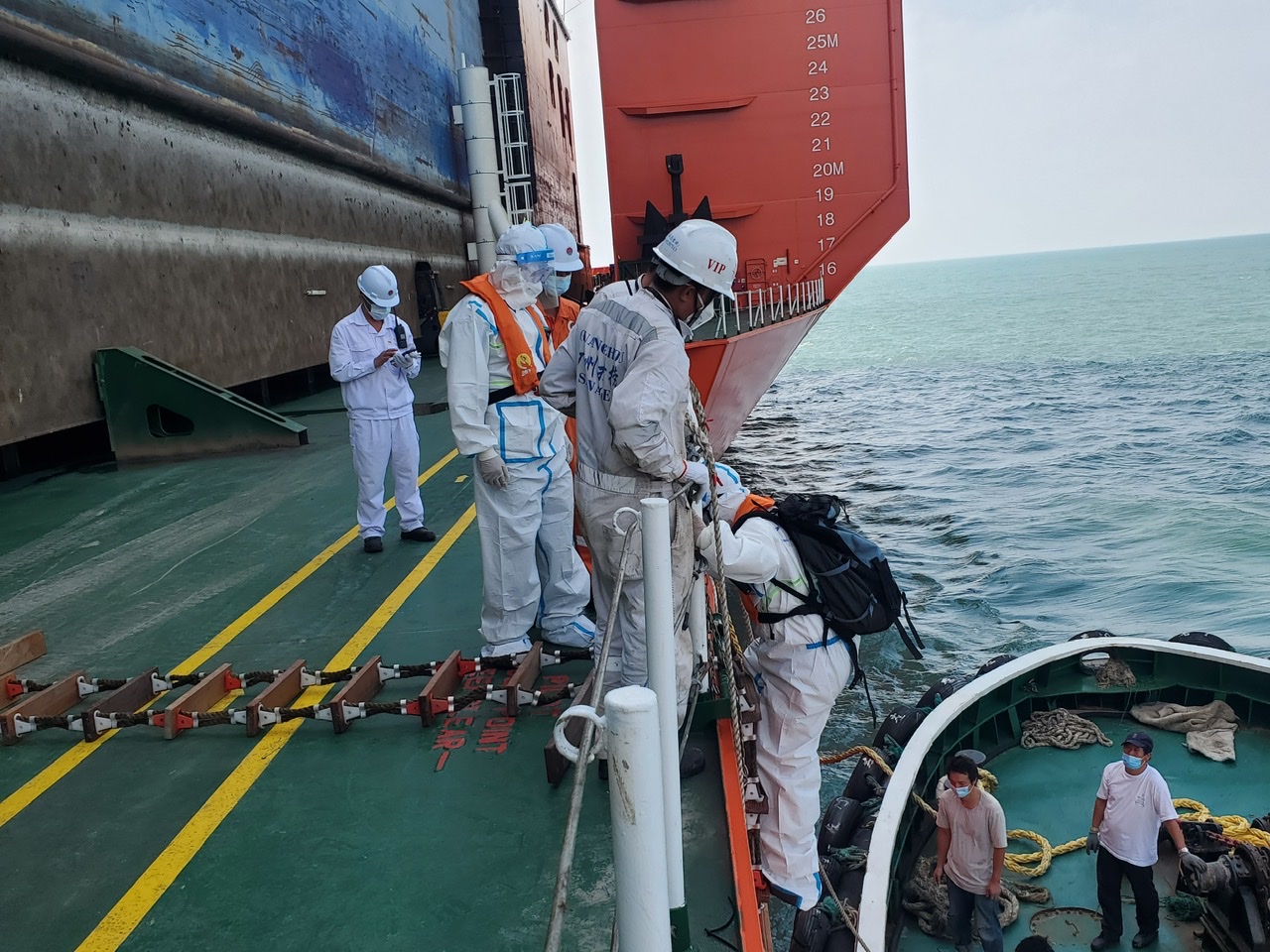 9月11日,上海邊檢總站洋山邊檢站移民管理警察前往錨地,登船“上門服務”,緊急為兩座大型國產海洋工程裝備辦理邊檢通關手續,確保兩艘半潛船和載運的貨物在受臺風“梅花”影響前及時出境。