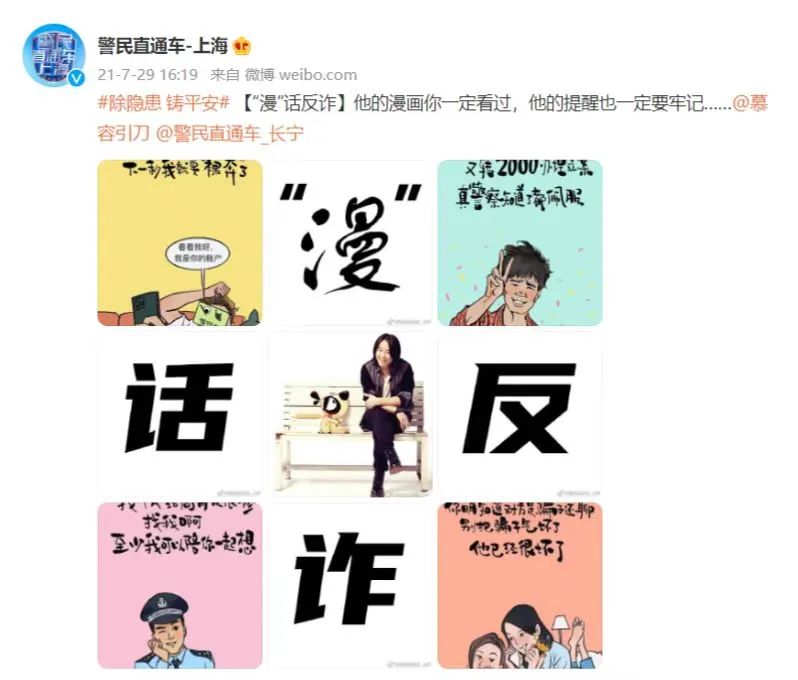 2021年,長寧公安跨界牽手“刀爸”慕容引刀推出反詐漫畫并成功出圈,又是源自于宣傳科民警在乘坐公交車時,看到車窗外戶外廣告時的“靈光一閃”。