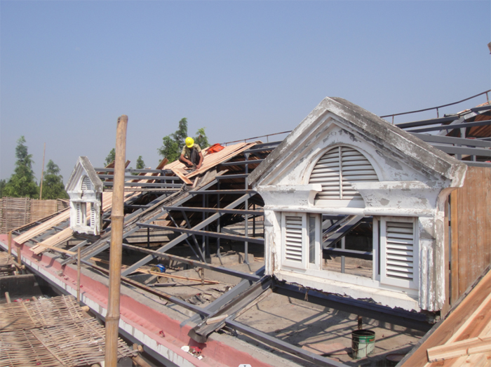 天山三村位于玉屏南路340弄、380弄,建造于二十世紀五六十年代,房屋多為廚衛合用,空間狹小逼仄。由于小區房屋建造時間較為久遠,小區屋面的隔熱板、防水層風化嚴重,外立面破損,暴雨天氣時常出現漏水滲水情況,對居民生活造成一定影響。