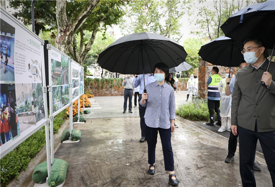 在和平公園,郭芳聽取相關情況匯報。經改造,公園通過補充下凹式綠地溢流出水口、新建下沉式景觀步道排水等方式,提升蓄水能力,減輕下游管網排水壓力,降低積水風險。同時,湖體調蓄還可實現“提標+控污”雙重效益。郭芳指出,要深入踐行人民城市理念,持續推進公園城市建設,堅持硬件軟件一起抓,增設引導牌、提示牌等標識,有序開展志愿者招募,進一步完善便民服務細節、加強精細化管理。