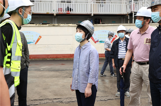 隨后,郭芳來到158地塊項目工地。為確保安全度汛、杜絕事故發生,施工方已根據相關要求,對近期施工方案進行了調整。郭芳指出,要壓緊壓實各方責任,制定完善應急預案,進一步排查隱患、及時整改、提前防范,守牢安全底線。要在積極推進項目施工的同時,從嚴從緊從細從實做好疫情防控工作,嚴格落實核酸檢測頻次,提升應急處置能力。