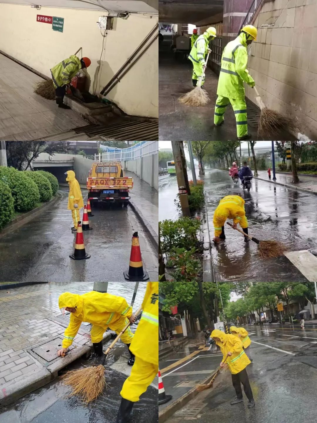 區綠容部門持續加強道路垃圾落葉的清掃,增加廢物箱收集頻次,對道路排水口進行全面的疏通清理,確保大雨來臨時道路排水通暢,加強道路排水口清理工作,保障排水通暢,繼續強化風口路口的巡查,全力做好防臺工作。各部門共出動138人進行安全檢查,尤其對嚴防空調外機墜落、地下空間積水、防汛物資儲備、搶險機械工具完備、人員安全轉移方面進行著重查看,同時對各風口、路口進行樹木再加固再排查,加強公園落葉清掃,雨水井清理工作。