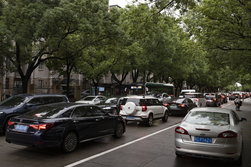 上海市實驗學校西校門口送學生上學的車流出現擁堵。