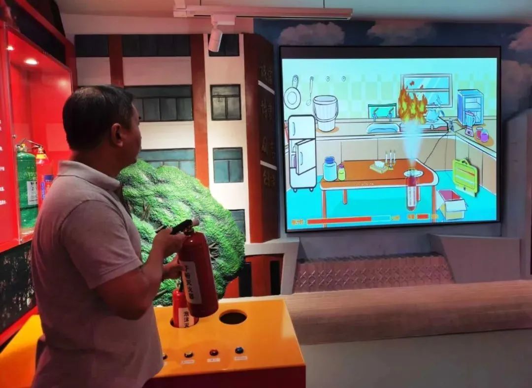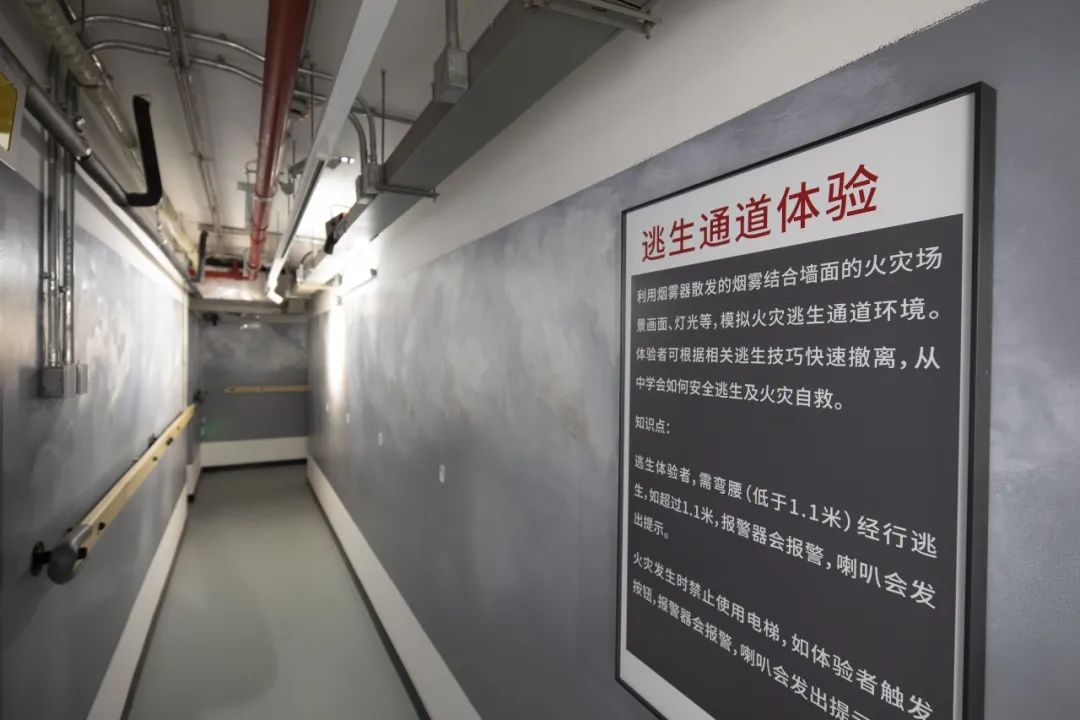 在民眾防護廳,市民可以運用VR設備、多媒體屏幕進行仿真滅火實踐,對人模道具進行醫療救護,模擬行走煙霧走廊里的逃生通道,通過互動形式,接受自救互救和應急逃生等知識技能。