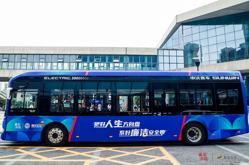 動靜結合,融“廉”入景?!拔覀兂嗽谝苿拥能噹稀畡幽X筋’,也在公交站點、站廳上‘下功夫’?!毕嚓P活動負責人介紹,他們為此次專線的公交車輛設計了兩種風格的廉潔文化IP形象,并在車內頭尾、側邊、擋板和拉手等多處,融合了特別策劃的廉潔元素。同時,還對沿線的公交站點、站廳也進行了全方面的策劃布置,采用廉潔故事、漫畫、海報等多種群眾喜聞樂見的形式,將廉潔理念融入車站櫥窗、智慧站臺和電子屏幕。