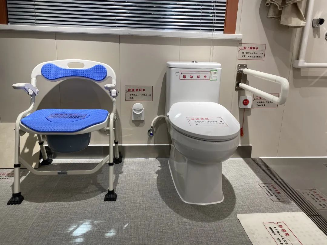 “阿婆,您看這個蓋子可以拿下來的,不用的時候再把蓋子蓋上,看上去就是一張普通的凳子?!惫ぷ魅藛T正在給前來參觀的居民陳阿婆介紹適老化改造項目中的一個設備——移動坐便器。