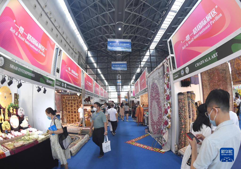 9月17日,參觀者在東博會“一帶一路”國際展區參觀。新華社記者 周華 攝