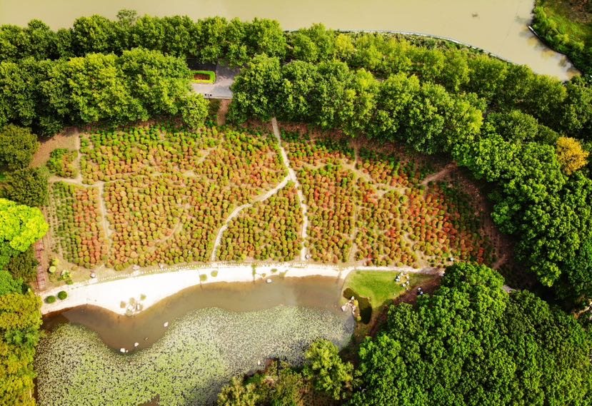 東方網記者曹磊9月20日報道:初秋時節,“城市綠肺”世紀公園成為市民娛樂、休閑、放松的最佳去處之一。位于世紀公園鄉土田園區20000㎡紅葉地膚進入了“換裝”期。