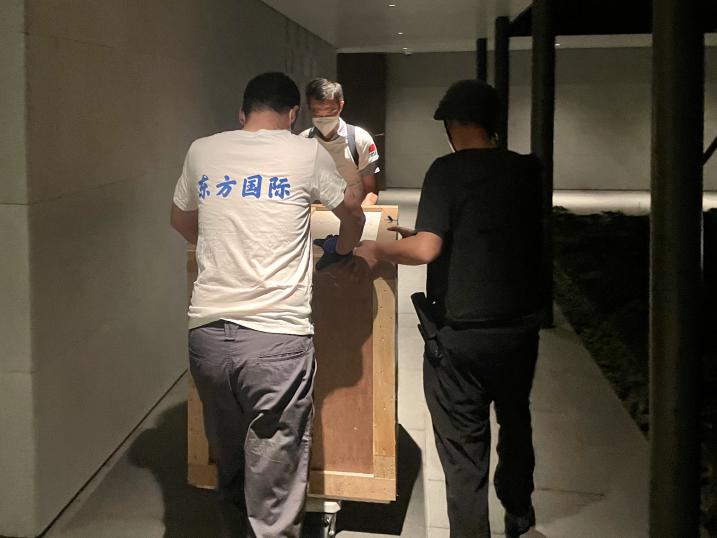 9月16日,東方物流香港合作方派專人上門檢查包裝、打包提貨,武裝押運至香港國際機場。9月19日,東方物流申領到該批展品的物資證明函,也是第五屆進博會第一份物資證明函,編號001。9月20日,該批展品順利入境后,東方物流兵分兩路“零時差”推進后續工作。第一路人馬趕往會展中心海關處申報,受益于海關支持進博會“穩中有升”的便利措施,整個申報過程高效便捷,僅在幾分鐘內便完成了通關。第二路人馬待機場貴貨倉庫驗發后,用4臺專車押運至暫存金庫,完成全部交付工作時已是深夜十點。