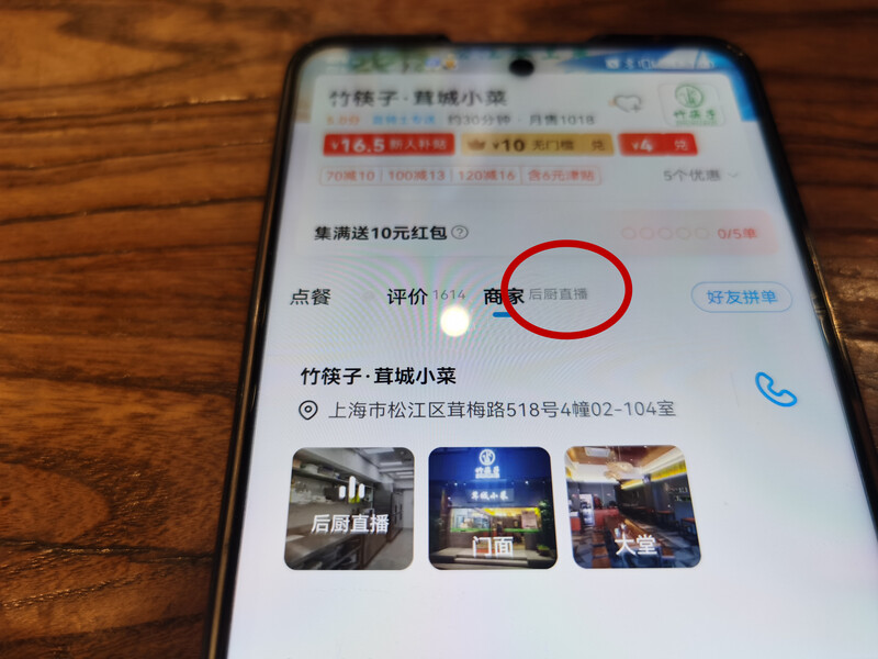 “直播”還能帶來更真實的信息。許多消費者在接觸新的外賣時,會在外賣平臺的商戶資質頁面里查找商戶的證照等信息,還會翻一下店鋪的照片。