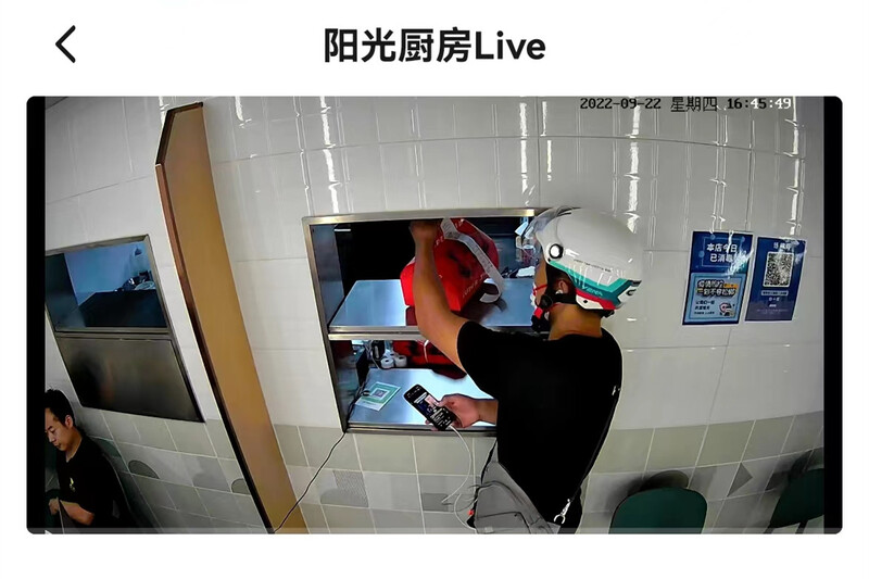 9月22日16時50分,消費者蔡女士打開送餐平臺里經常光顧的一家門店,發現頁面上多了一個“后廚直播”,點開后,可以看到打包出餐窗口的實時監控畫面。