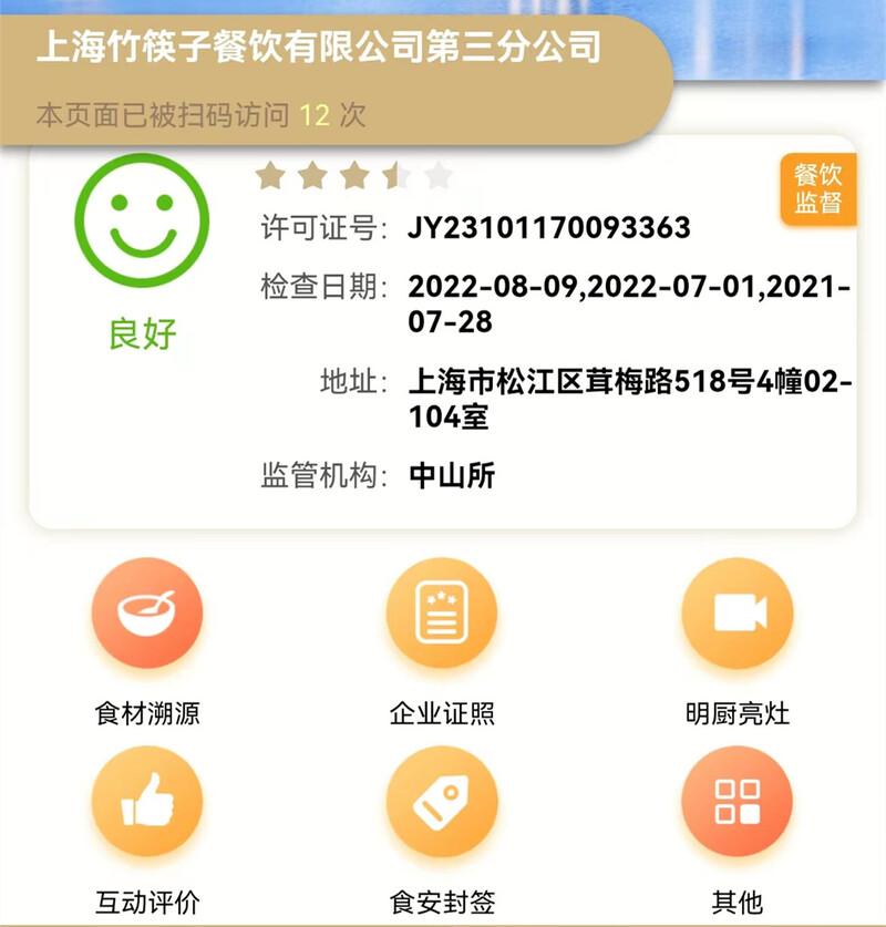 在竹筷子茸城小菜茸北店,每一份打包好的外賣都扎上了食安封簽,送到消費者手中后,掃描食安封簽一頭的“食安碼”,可以看到飯店的“臉譜”(餐飲服務單位食品安全動態評定等級,綠色“笑臉”為良好)信息,還可以發表評論,點贊或吐槽。