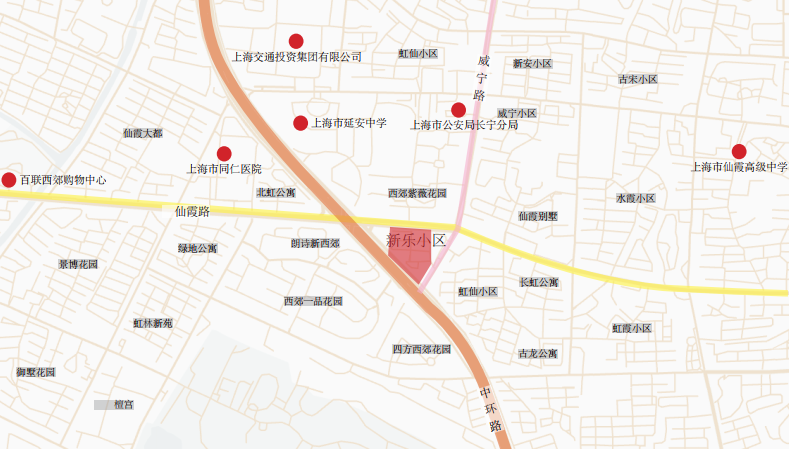 小區三面臨路,北臨仙霞路,西南面臨中環路,東臨威寧路。