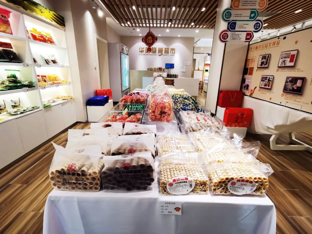 除了品類豐富的幫扶農產品,華陽慈善超市此次還設置了上海傳統食品專柜,主要售賣茂昌蛋卷、光明威化、泰康萬年青、老香齋糕點等老上海傳統品牌商品,用更實惠的價格讓社區居民在家門口就能重拾“小辰光額米道”。