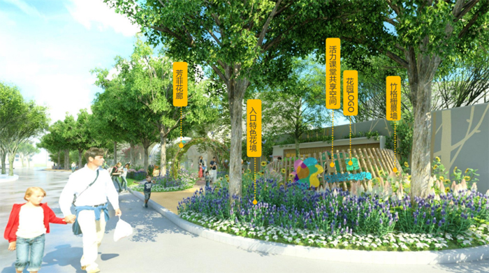 “芳菲花廊”旁的蜜源花境,將多種植蜜源植物,吸引蜜蜂、蝴蝶來此活動,為它們提供專門的棲息地。