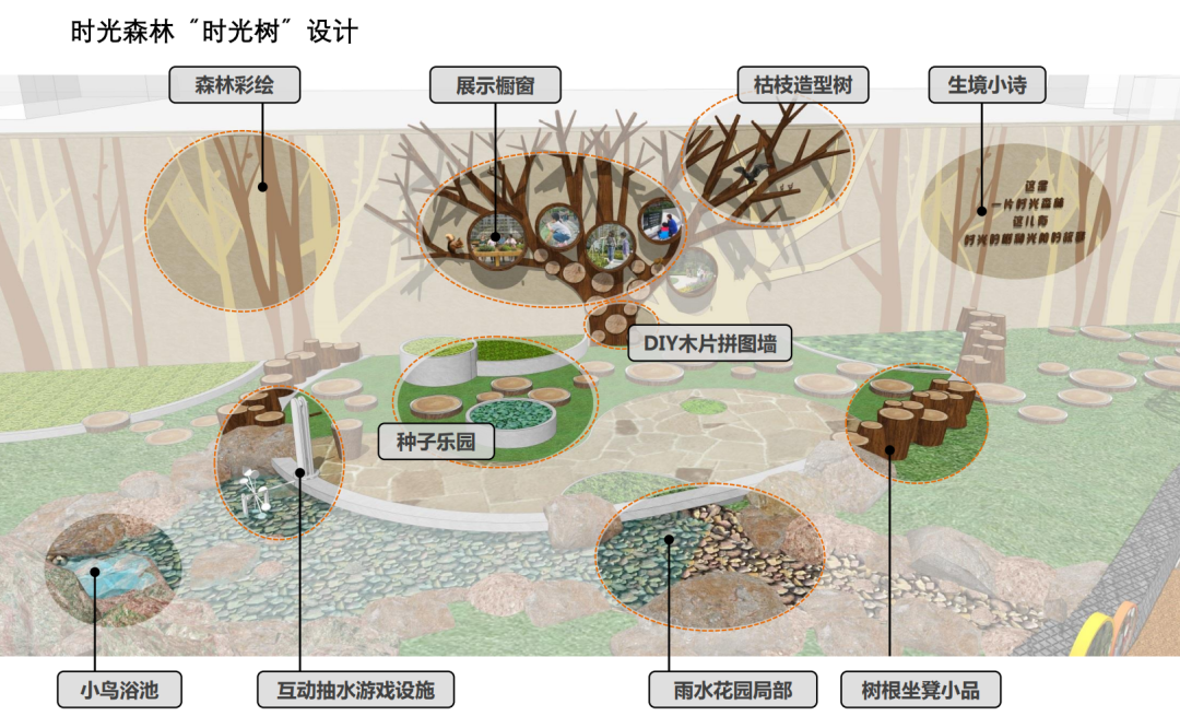 “這是一片時光森林,這兒有時光的樹和光陰的故事?!闭麄€“融·生境花園”里,將設置3棵“時光樹”,利用木片貼片,展示不同植物的成長軌跡。