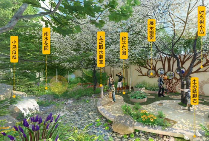 春天播下希望的種子,秋天才能收獲美麗的果實。不同于“活力課堂”,這片“種子樂園”是專門面向附近學生開放的種植體驗區,不僅可以直觀參與到植物生長的過程中,還能通過設置的鳥浴池,觀察小鳥喝水、沐浴等行為軌跡。