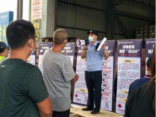 鐵閔貨場位于上海西南部的物流中心區域,這里道路四通八達,人員流動性較大。為進一步提高禁毒宣傳的覆蓋面和實際效果,不斷擴大毒品預防教育的影響力,努力提高社會群眾的識毒、拒毒和防毒意識。9月25日,由閔行區馬橋鎮平安辦牽頭,聯合鐵路閔行派出所、馬橋派出所、馬橋鎮禁毒辦等部門單位,在鐵閔貨場開展了一場禁毒知識宣傳活動。