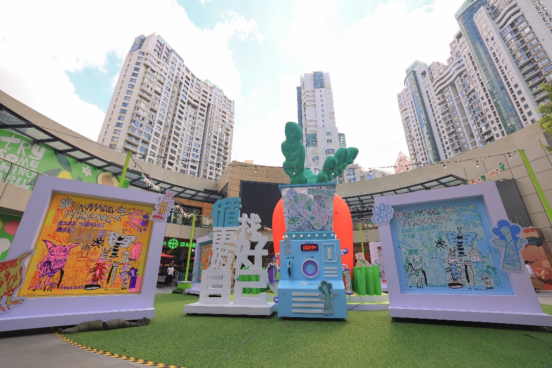此次展覽通過“一個塑料瓶回收”串聯起了持續再生產品、循環回收站點、共創藝術作品,以及科普教育等多重內容。以“可觀”“可感”“可觸”的方式,讓公眾切身感受到塑料瓶回收再生的價值和環保藝術的魅力。眾多親子家庭與齊聚活動現場,通過涂色拼貼的方式與藝術家Dandi共同完成絢麗美好的“巨幅絲巾”畫作,另外現場還可通過AR掃物,獲取更多回收再利用的環??破罩R。