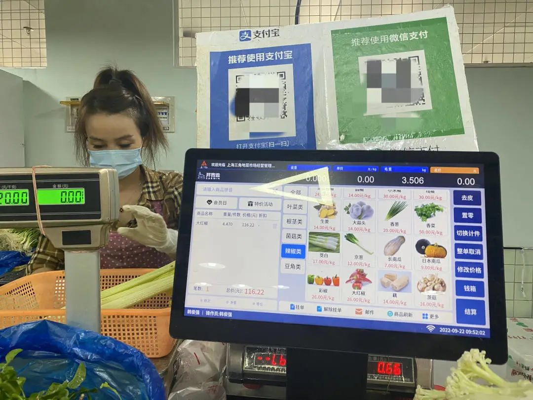 除了環境的改變之外,在智能化設備的賦能下,奎照路菜市場也升級為一家“智慧菜場”。菜場管理方給每個攤位都配上了智能化設備,液晶顯示屏和智能電子秤上的菜價、營業執照、溯源信息等一目了然,讓顧客買得更放心。