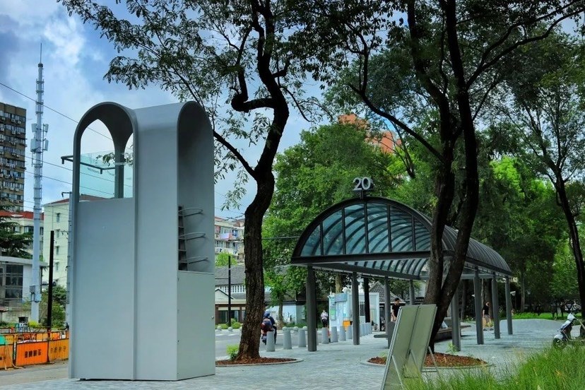“我們看過很多電影里有關車站的美好場景,我覺得城市要增加這樣的設施,讓人民群眾在尋常生活中產生一些記憶和故事,讓車站成為有故事的車站?!敝猩焦珗@改造施工方代表潘晶表示,“城市要更新,也要保留歷史風貌,像20路這樣的電車線路,可能會一直保留著成為上海的記憶?!庇谑?,在幾經討論和易稿之后,呈現了現在這樣一座全新又有溫度的20路公交站:車站整體色彩既沉穩,又有一些明快元素;穹頂的亭子與公園內的貝殼廣場遙相呼應;煥然一新的煤精亭(煤精亭是有線電車特有的附屬設施,可以讓電車“辮子”采電),更激起人們探討其背后故事的興趣……