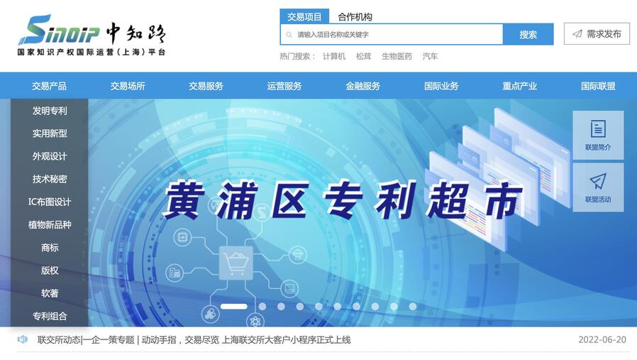 上海市知識產權交易中心黃浦區專利超市板塊