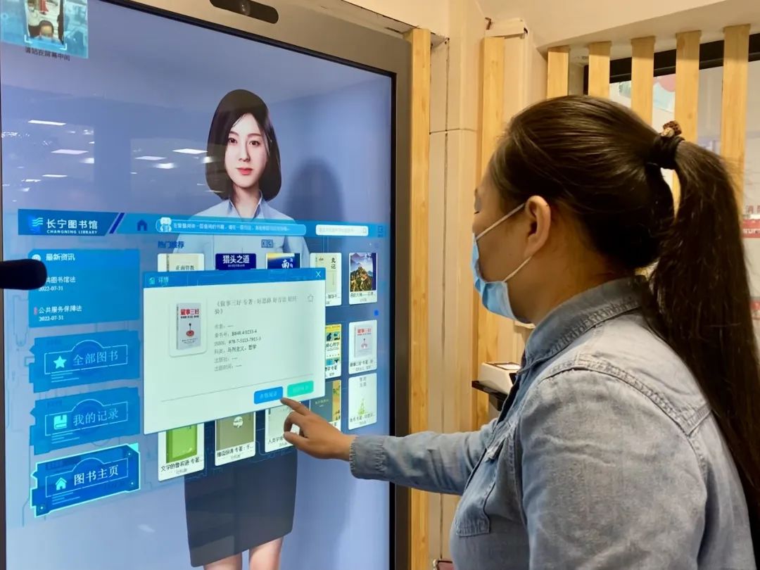 走進位于天山路上的長寧區圖書館一樓,一個名叫“馨葉”的數字人小姐姐吸引了不少來往讀者們的注意?!八庇袟l不紊地為讀者解答著長寧區圖書館的相關信息,還“無償”為大家提供圖書借閱服務。