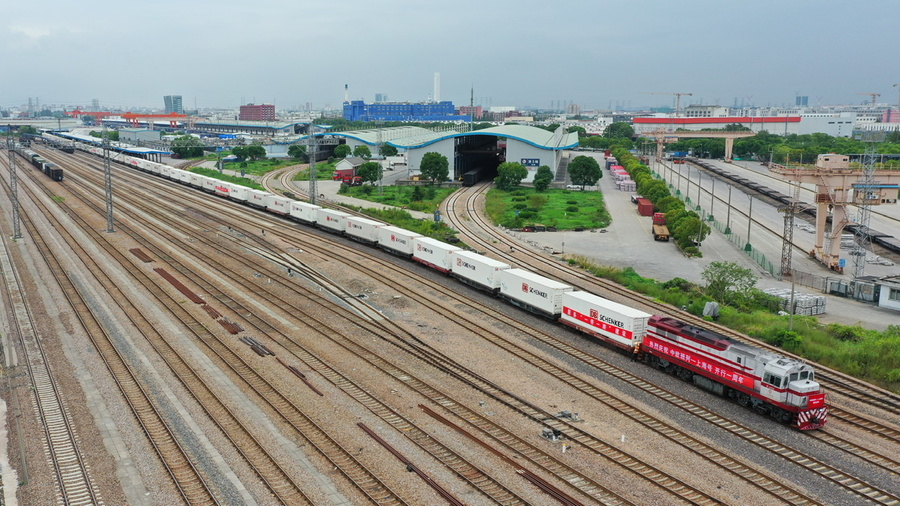 9月28日上午,“中歐班列-上海號”第50趟列車在鐵路閔行貨運站發車。該列列車裝運50個滿載汽車配件、機械零件、陶瓷制品等貨物的40尺集裝箱,將從上海閔行發車至霍爾果斯、經波蘭馬拉舍維奇駛往德國漢堡和杜伊斯堡。