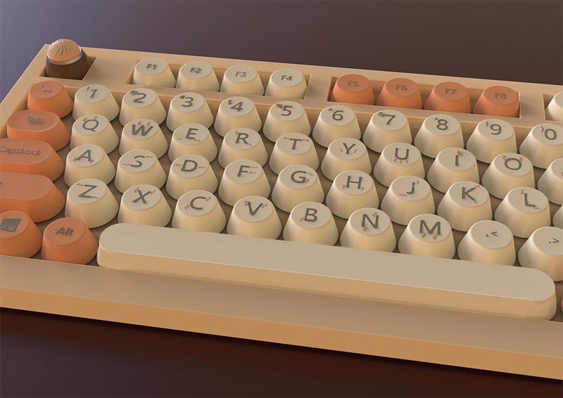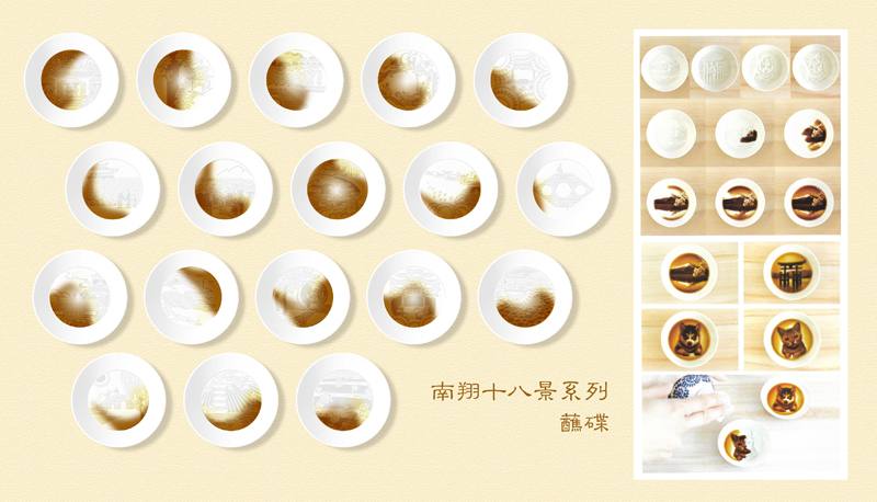 南翔,處處浸透著古老的文化底蘊?!澳舷枋司啊逼渲杏猩裨捁适?、古寺道院、園林景觀、喬木花卉、鄉景民俗、水域橋梁……韻致神秘、富有神采、美麗溫婉、令人向往。該款“點蘸南翔”蘸碟,選取了南翔十八景“太平競渡、槎阜社燈、雙塔晴霞”三景制作成蘸碟內底紋,盡顯神韻,并配有即可當筷架又可當碟架的定制支架,正所謂“品南翔小籠,鑒槎溪神韻”。另一款“包籠萬象 蒸蒸日上”小籠鍵帽鍵盤套裝,鍵帽配色選取了與小籠包面皮、湯汁、 肉餡兒相近的顏色,ESC 鍵采用蒸籠加小籠包的外形作為展示,設計新穎、精致實用,兼顧了文創產品的實用性。