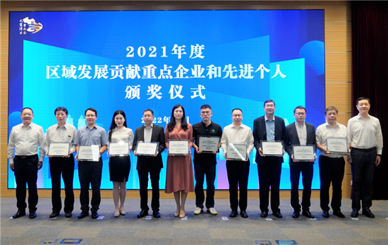 會上舉行了2021年度區域發展貢獻重點企業和先進個人頒獎儀式,對50家“2021年度普陀區區域發展貢獻重點企業”及100位“2021年度普陀區區域發展貢獻先進個人”進行了表彰。普陀區圍繞“寫好五線譜,譜好兩部曲,攜手零距離,共畫同心圓”的奮斗目標,全區上下共同努力貫徹新發展理念,服務新發展格局,營造了“人人靠譜、事事靠譜、處處靠譜”的良好氛圍,涌現了一大批銳意進取、奮力拼搏的企業和先進個人。本次表彰旨在弘揚開拓創新、奮發向上的優秀精神,鼓勵全區凝心聚力、主動服務、勇擔責任,為加快建設“創新發展活力區,美好生活品質區”作出更大的貢獻。