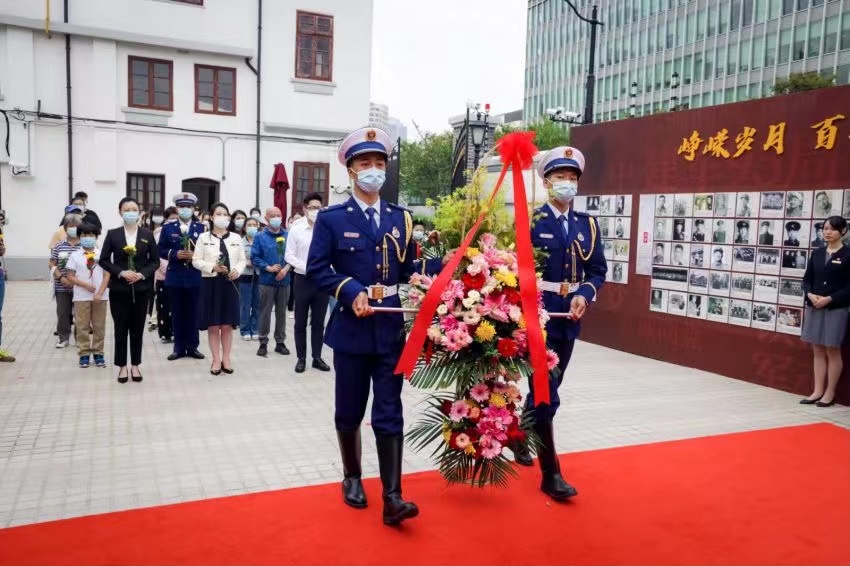 上午,在肅穆的《獻花曲》中,消防戰士穩抬花籃、緩步向前,向“軍委四烈士”紀念像敬獻花籃。全場肅穆而立向“軍委四烈士”紀念像三鞠躬,并有序敬獻寄托哀思的花枝,表達對先烈的深切緬懷和崇高敬意。