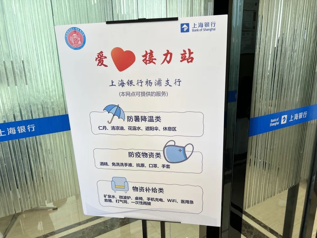 隨著“HUI新屋”的揭牌,上海銀行楊浦支行為一線外賣騎手們準備的愛心接力站也開始啟用。醫療箱、濕紙巾、飲水機、書籍……站點位于上海銀行楊浦支行辦事廳的一角,準備齊全,溫馨又有愛,可供騎手們休憩歇腳。