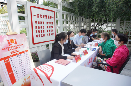 9月29日,“迎國慶、賀重陽”大型為民服務和選民接待活動在復興島公園黨群服務站舉辦。來自定海路街道人大工委的數名人大代表來到現場,與選民面對面,征集2023年度實事項目居民意見。同時,上海第一康復醫院黨員志愿服務團隊開展秋季常見病現場理療服務,以及市公安局楊浦分局和楊浦區人民檢察院攜手開展反詐騙宣傳。
