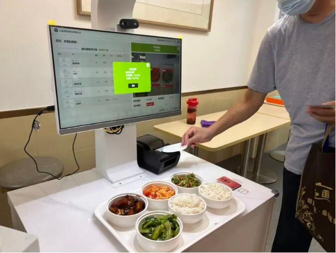 從進門的菜品大屏幕、感應式自動出筷出勺機器,到AI自動識別菜品和面部結算,全程無接觸。這樣的“無接觸智慧食堂”讓社區老人們感到更加安心?!斑@里都是無接觸的,太棒了,就餐時安全又衛生!”