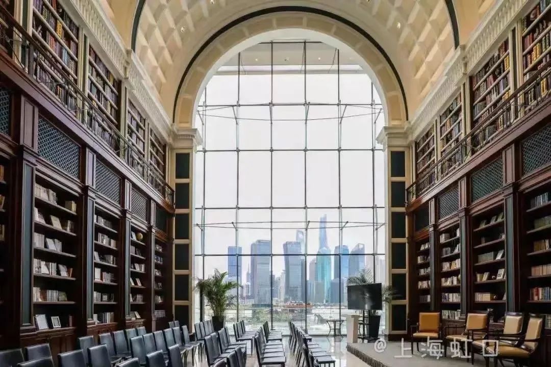 書局最吸睛的地方,就是它4樓閱覽室正對黃浦江的巨大落地窗,還有整齊排成兩排的古典閱覽室書桌,整墻的書,巨大弧形穹頂,讓人仿佛走進了霍格沃茨的魔法世界。