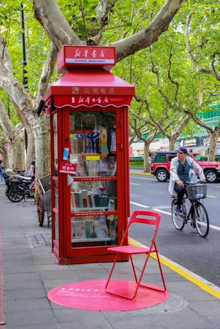 為期5天,新華傳媒聯合新華路街道和中國電信,限時開啟了公益快閃書店“新華路上的新華書店”。新華路上的5座紅色電話亭,經過改造后,成為小巧又特別的書店。