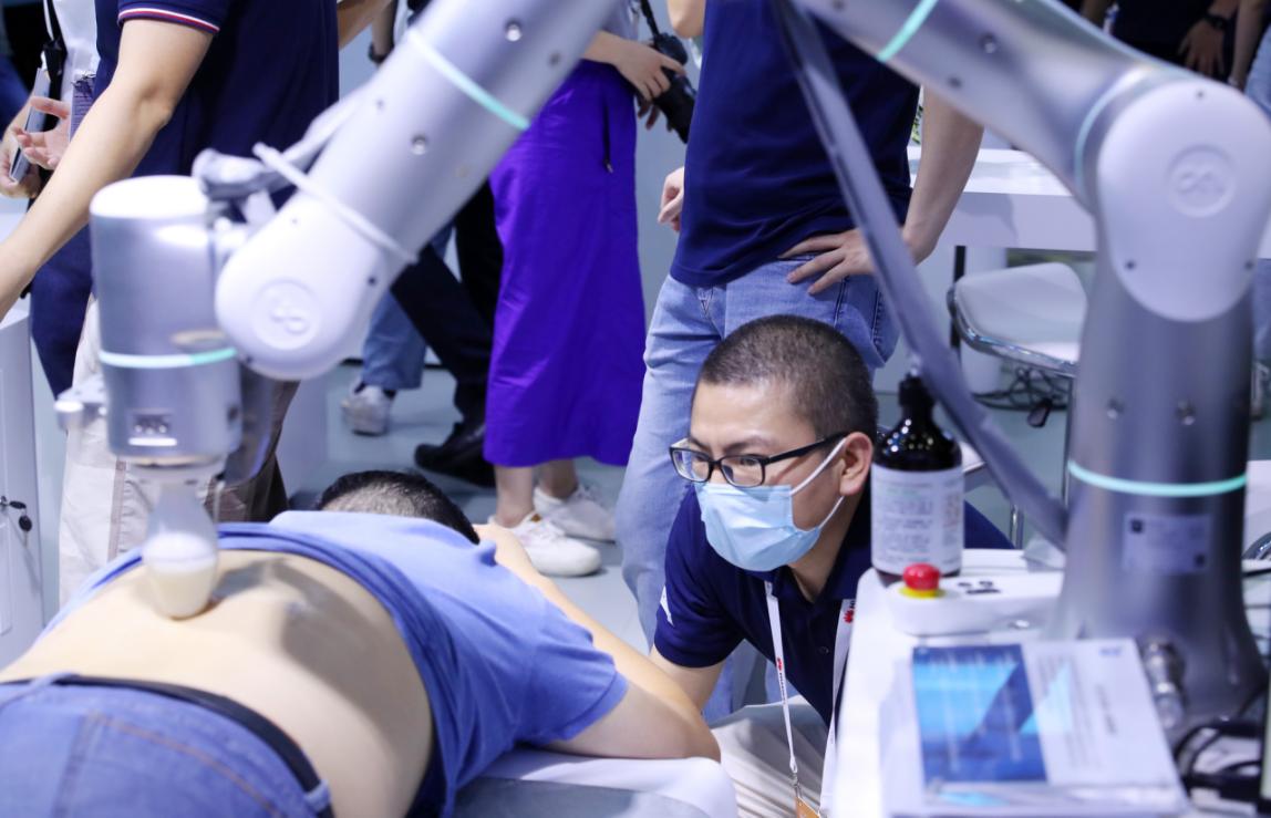 2022年世界人工智能大會上,觀眾體驗自適應機器人按摩。新華社記者方喆攝