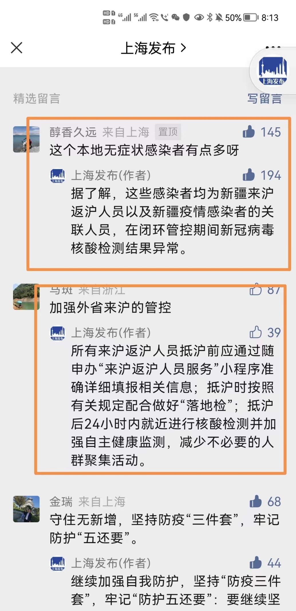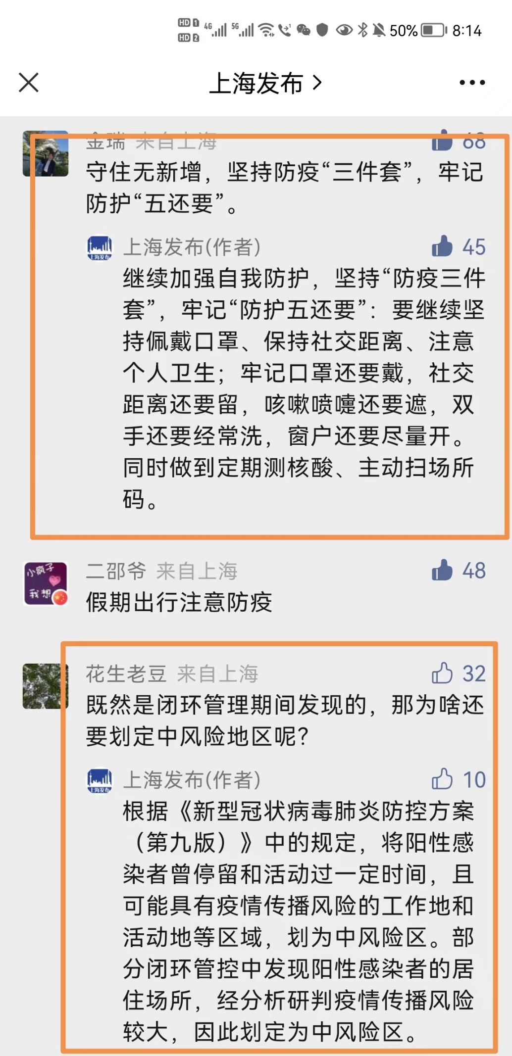 從以上回復里,“上海發布”透露的疫情防控信息至少包括: