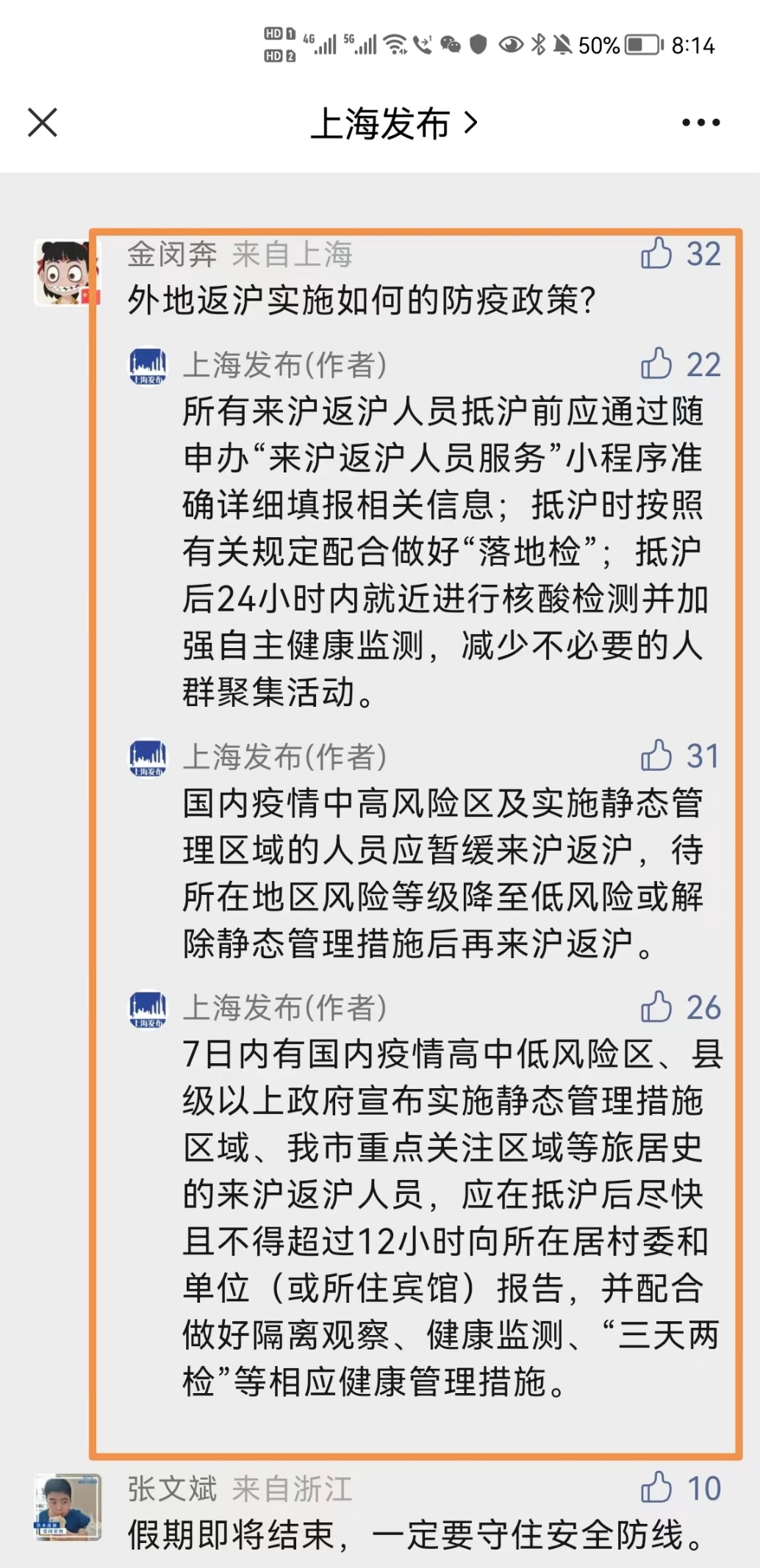 以上這些,也都出自“上海發布”評論區的網友留言。對于長假之后,保持住來之不易的疫情防控成果,期望殷殷。