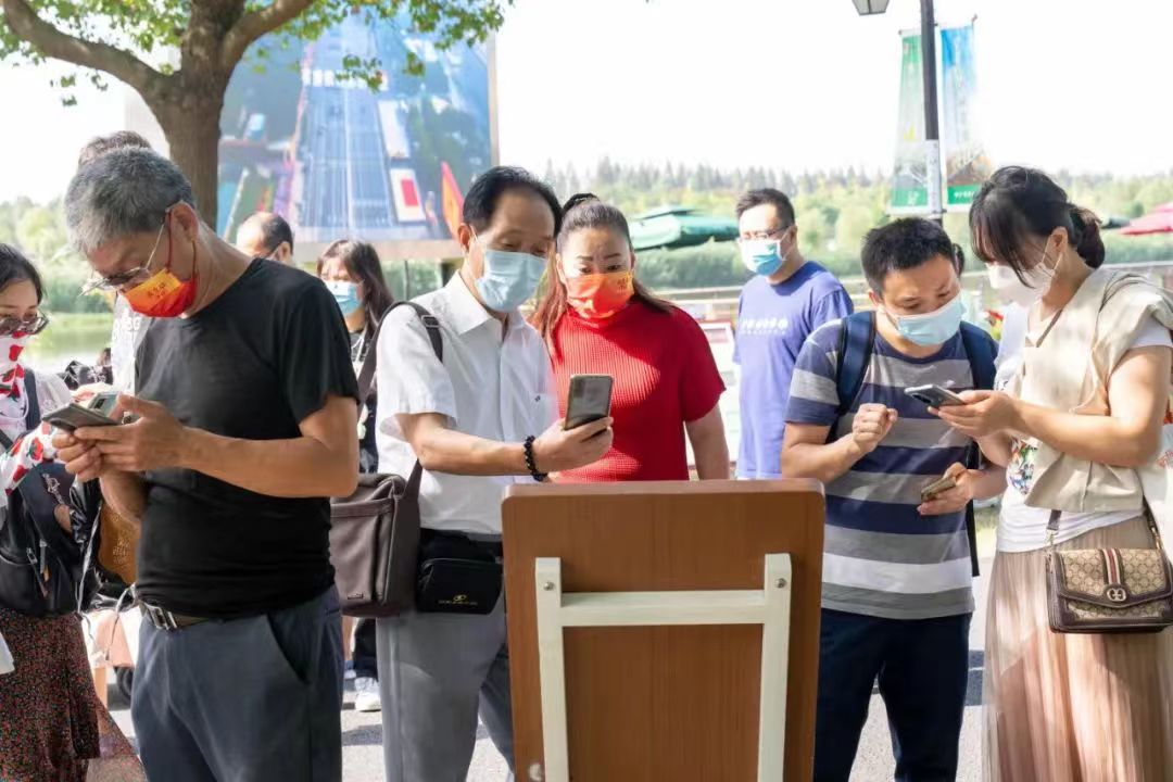 10月3日,上海崇明一景區,游人們正在掃碼進門。吳雄攝