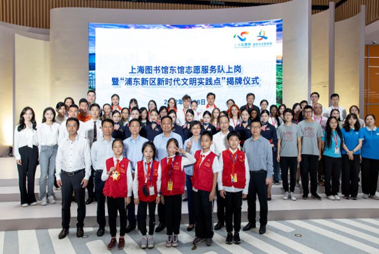 上圖東館志愿服務隊整裝待發,浦東新區新時代文明實踐點在上圖東館揭牌