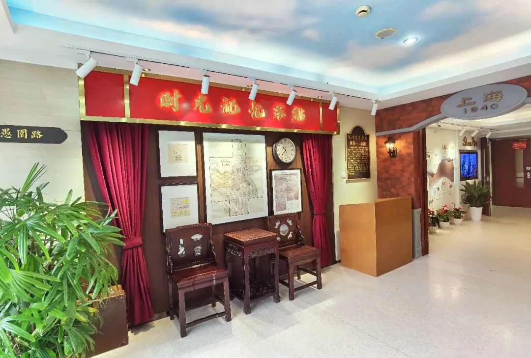 來到8樓,仿佛搭乘“時空列車”穿越到老上海的舊時光,兩扇電梯門繪制了1921年和2021年的火車頭圖案。踏出電梯,“時光記憶車站”一下子映入眼簾。這里重現了老人過去的生活場景,以生命的時間軸為序,提供溫暖的“家”的環境模樣。