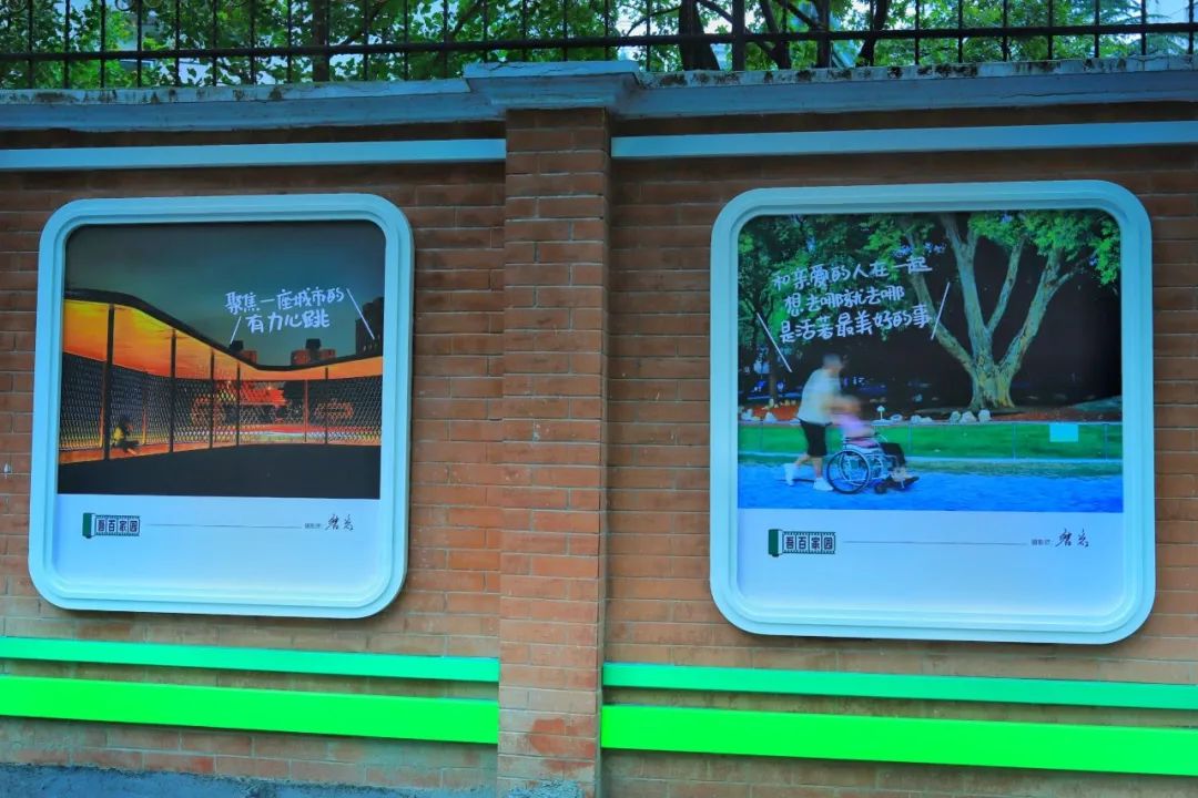 影廊通過流動、成長、煙火、蝶變四個篇章,展示了當地居民的攝影作品,將過去、現在和未來串聯起來,也將百年校園、百年公園、百年建筑、百年公交、百年道路和百年古樹的時光變化一一展現在過往居民面前,為居民們打造充滿記憶和溫馨的城區氛圍。