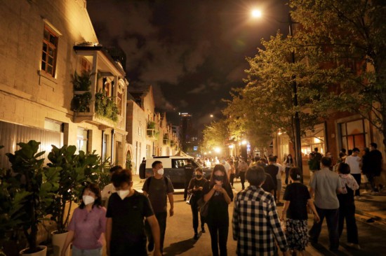 限時開放的茂名北路步行街,無縫鏈接起豐盛里、張園兩大新老石庫門建筑群,也把吳江路連過來,這樣就把這塊地方連成片、做活了。國慶期間,主辦方還在這條步行街上舉辦了天井畫廊等藝術展,在張園推出陽臺音樂會,給周邊商業帶來活力和客流,成為人氣最旺的街區之一。