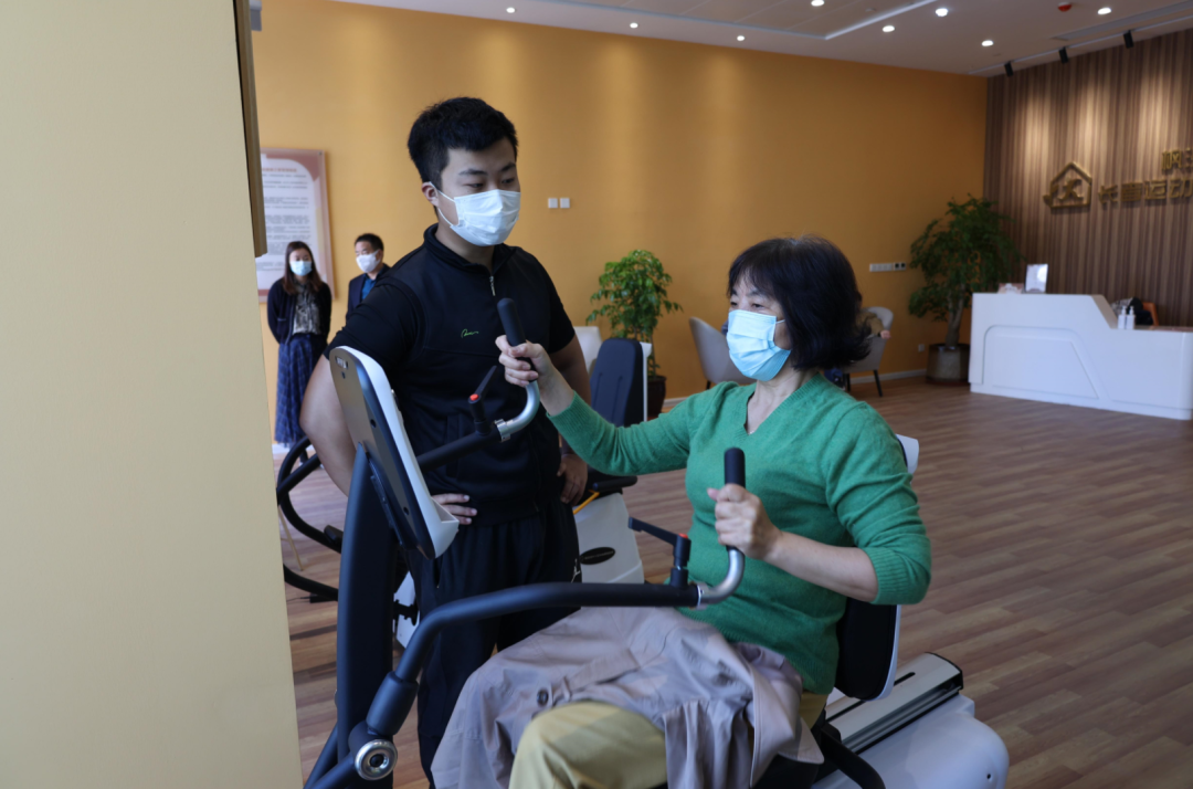 館內配置了專業老年人跑步機、等速腿部前踢訓練機、血壓計等適老化健康促進設備10件,可以為老年人提供健康檢測、科學指導、器械鍛煉、健康講座、運動方案制定、慢病干預等服務。