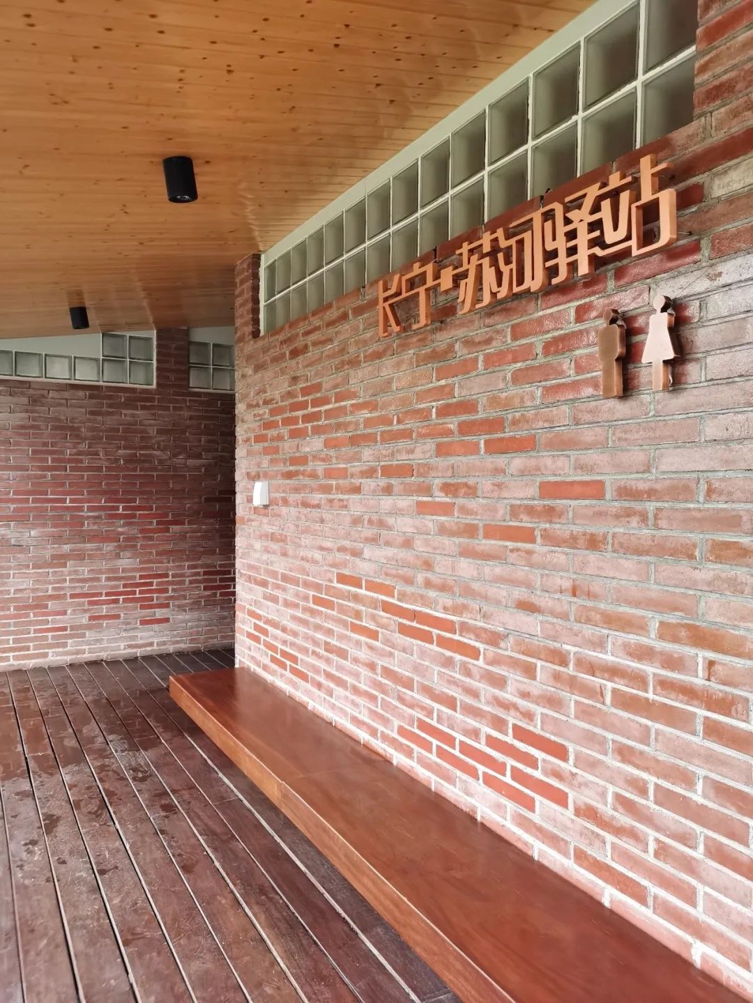 在長寧蘇州河健身步道華政段的百年建筑群中,藏著一座紅磚黛瓦的驛站,可為市民提供如廁、休憩等服務,其建筑風格亦與華政段的整體風貌和諧統一。