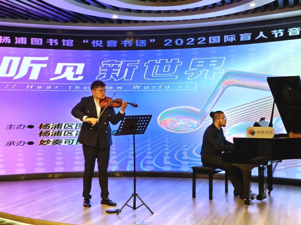 作為“閱讀+音樂”結合的閱讀推廣項目,楊浦區圖書館“悅音書話”音樂普及活動持續關注視障群體,自2020年起,與楊浦區盲人協會合作,在每年的國際盲人節舉辦特別音樂會,為盲人讀者送上“聽得見的閱讀服務”,共創文明和諧的新世界。