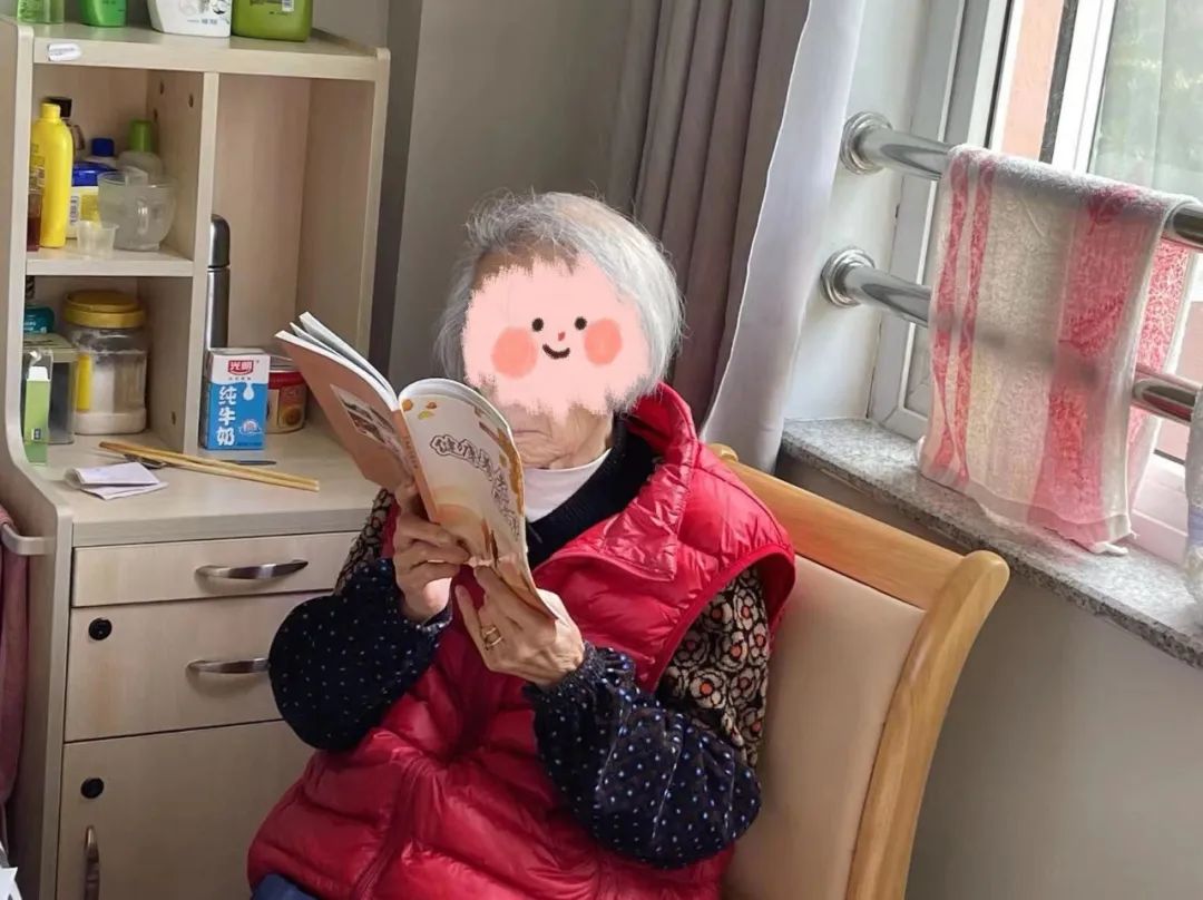 上午10時,陽光透過窗戶灑進房間,103歲高齡的周阿婆正沐浴在陽光下看書。一本書、一把椅子,入住10余年,她一直保持著坐在窗前看書曬太陽的習慣。