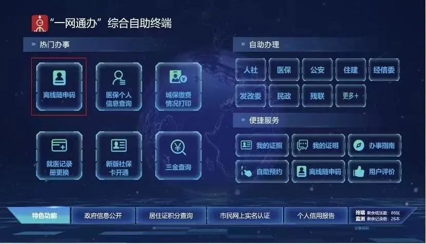 01 在“一網通辦”綜合自助終端上點擊“隨申碼離線服務”。